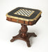 Add a flair of opulence with the Fossil Stone Game Table. Intricately carved from wood solids and resin components, it stands firmly on an urn shaped pedestal that ends in paw like feet. Fossil stone veneers create the reversible game board with chess, checkers and backgammon. Two working drawers are situated right below the table with antique lion head pull handles. Overall, the entire table emanates a majestic and rich look, bound to highlight your home without a doubt.