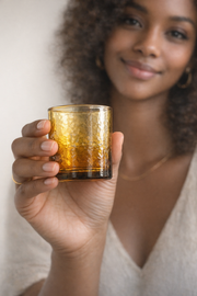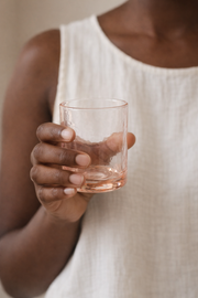 Designed to complement your carafe + cup set or stand on their own, these handblown glasses feature a subtle hammered texture and balanced weight for an elevated everyday feel. Made from 100% recycled colored glass, the tone is infused to ensure lasting color.
