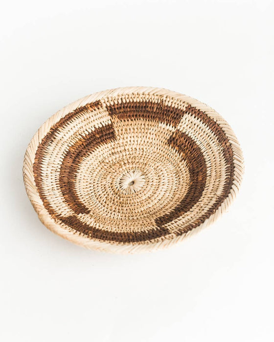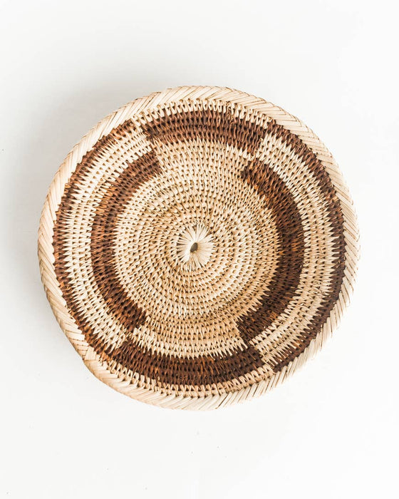 Palm leaves, wild twigs and creeping vines make this distinctive Tonga basket a truly unique home accent. Each basket takes days to make and uses palm leaves carefully boiled in natural dye and dried in the sun. These are traditionally used as fruit baskets but also look great in our favorite wall basket displays.