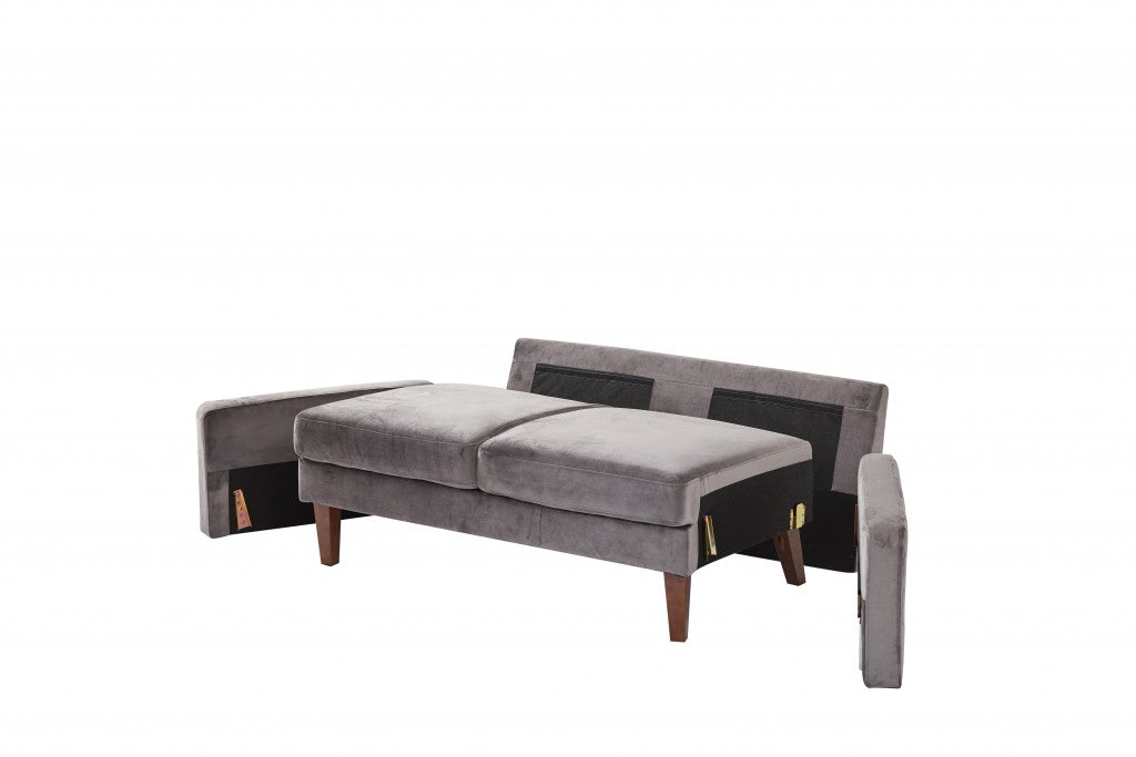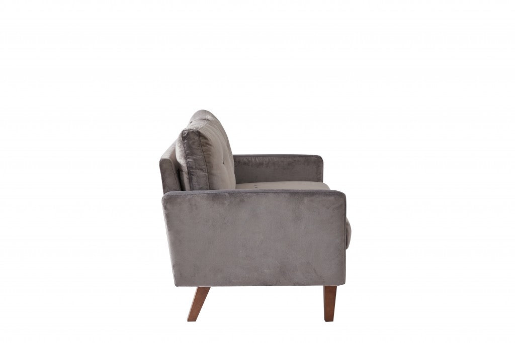Let your house emanate an air of trend and tradition with this Trout Gray Velvet Modern Modular Loveseat in your living room. The trout gray velvet upholstery looks sophisticated with a subtle sheen, giving the pillow a luxurious feel. The high-density foam ensures a comfortable seating experience, while the tufted back improves the cushioning of the backrest and lends a traditional charm to the piece. This modular loveseat can be effortlessly put together in tight spaces or corners without any hassle. To add to the beauty with an antique appeal, the loveseat is perched atop brown tapered legs that provide support and stability to the furniture. If you want a minimal piece of modern-classic décor that stands out in fashion and functionality, this modular loveseat will be an ideal pick to complete the look of your living room.