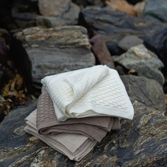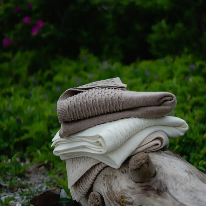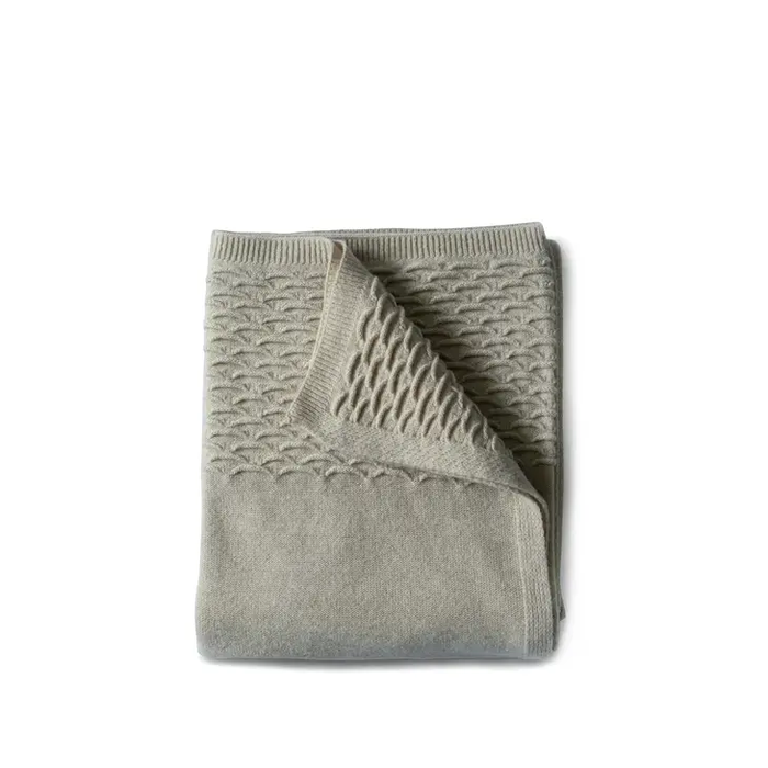 100% soft lambswoolSuper soft 'hand' of lambswool. Unique scallop texture. Has the energy of a treasured knit sweater.