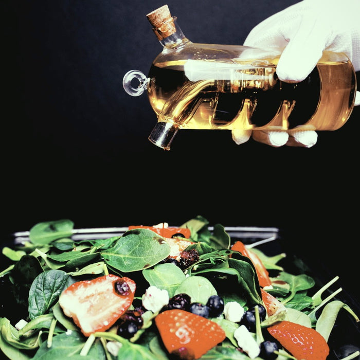 This unique Oil and Vinegar Bubble Cruet is the height of contemporary style, It is separately in one vessel creating a visually striking object ready for your table.