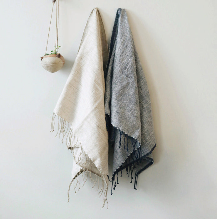 The Petra Collection features a dyed warp complimented with a natural, un-dyed weft and meticulously hand-tied tassels. This best-selling piece offers the softness and texture of hand-spun cotton with a unique depth of color woven through the warp. Look no further for a timelessly classic hand towel at home in any kitchen or bath.