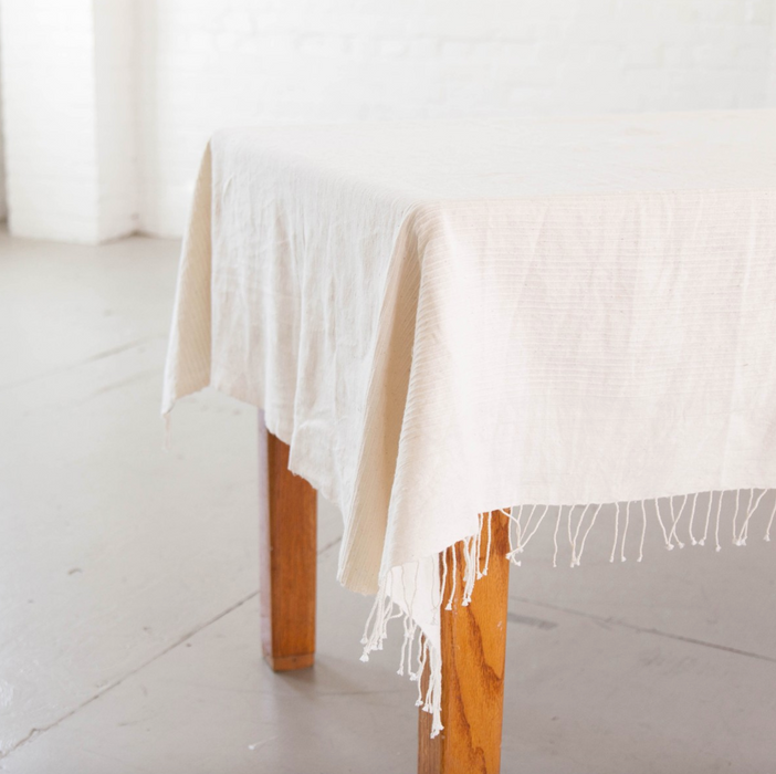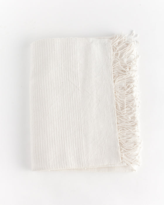 The timeless elegance of natural un-dyed cotton makes this piece perfect for all occasions. Delicate ribbed accents add depth and detail. Exquisitely hand-woven in Ethiopia from local hand-spun cotton, this piece offers rich texture that is durable and easy to care for.