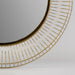 Add a touch of contemporary design to any wall in your home with this Round Gold Iron Wall Mirror. The frame of this mirror is made from solid iron, which is colored to a gold finish. The round mirror sits in the center, surrounded by a gold iron border. From this border there are small gold iron rods coming out to form a sunburst pattern that is see-through and looks light and airy. There is one edge border and one secondary border on the inside for an added design touch. This mirror will look great on top of a console table in your entryway, as a vanity mirror in your dressing room, or even as a decorative mirror to open up a smaller room. 3.5" H x 32" W x 32" D.