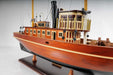 This is a great model of Seguin tug boat. It was all handmade by strips of mahogany and teak. All built plank on frame. Look at all the amazing details on the windows and deck area. All the little pieces of wood are glued together in a tremendous amount of time. The masts and the smoke stack and the lower portion of the hull are painted in the original colors. It has a shiny finish that make this model looks very beautiful. The craftsmen must have spent over a hundred hours with this.