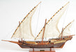 This rare and beautiful Model Ship Sculpture is patterned after the Xebec which was built for speed by having a narrower floor than most tall ships. It is available as a fully assembled model ready to be proudly display as a piece of history. Master craftsmen handcraft these highly detailed wood models from scratch using historical photographs, drawings and original plan. They are built to scale with high-grade wood such as: western red cedar, rosewood, and mahogany. They are 100% hand built individually using plank-on-frame construction method and are similar to the building of actual ships. Each model requires hundreds of hours to finish and must go through a demanding quality control process before leaving the workshop. The Xebec has three masts with an elaborate display of riggings. There are gold coated metal cannons around the hull. The extended stern is the most eye capturing part of this model. There is a miniature wooden rowboat on the deck with oars. The elongated bowsprit of the Xebec makes it really stand out as a beautiful ship. You can find dozens of detailed sculpture and ornaments throughout the Xebec. This model come with an attached wood base with a brass nameplate. It'll make a perfect gift for a home or office decorator, boat enthusiast, or passionate collector.