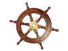 This 24-inch ship wheel is made from the finest quality of rosewood. Its center is fitted with a golden brass hub. The ship wheel is of a classical design that accents the heritage of sailing. It is a beautiful piece that would be perfect for the home, office, or even on your own boat.