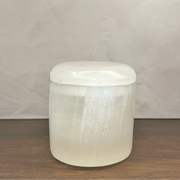 The Selenite Jar is a handcrafted decorative container designed to bring soft luminosity and natural texture to your space. With its smooth, polished surface and gentle translucence, it offers both functional storage and a refined accent suited for a variety of interiors.