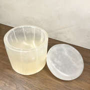 This selenite jar offers a balanced combination of natural material, sculptural form, and functional storage for thoughtful interior styling.
