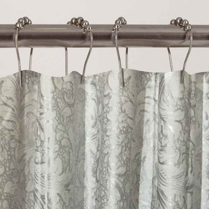 SILVER BAROQUE PATTERN SHOWER CURTAIN