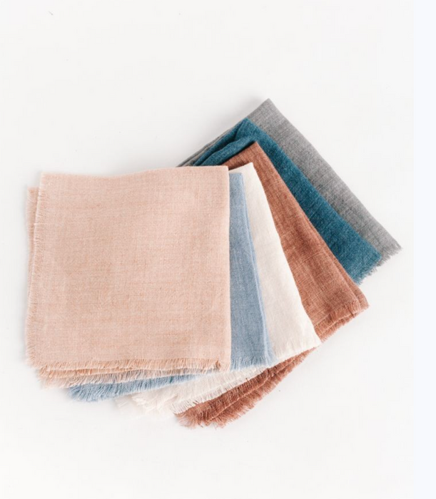 Elegant yet simple and easy to care for, our stone washed linen cocktail napkins are a must for any special occasion. Each measures 12 x 12 inches with delicate frayed accents on each edge