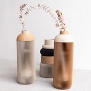 The Surya Vase brings modern craftsmanship and sustainable design together in one sculptural accent piece. Created from a blend of wood fibers and bioplastic derived from corn starch, it offers the authentic look, texture, and subtle scent of raw wood while remaining renewable and biodegradable.