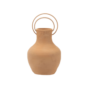 The Toro Vase brings sculptural simplicity to any surface. Crafted from solid terracotta, its classic hourglass silhouette is complemented by curved side handles that add character without excess detail. The natural clay finish introduces warmth and texture, making it ideal for dried stems or as a standalone accent.