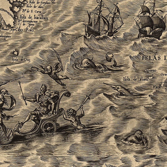Americae Sive Quartae Orbis Nova - 1562 Vintage Map Wall Art is a great Historic Map print by Diego GutiŽrrez shows the America's as it was known in the 1500s. Includes texts in cartouche, statements of dedication, coats-of-arms, illustration of allegorical figure "Victoria", and illustration of sailing ships at sea and imaginary marine creatures. The wording on the map reads: "Americae sive qvartae orbis partis nova et exactissima descriptio / avtore Diego Gvtiero Philippi Regis Hisp. etc. Cosmographo ; Hiero. Cock excvde 1562 ; Hieronymus Cock excude cum gratia et priuilegio 1562". This classic and historic reproduction vintage poster is printed on heavyweight matte art paper that is made to last. This historic looking print is ready to frame, mount, or display as a poster directly on the wall.