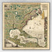Henry Popple's America Septentrionalis, is a reproduction 1733 Map of the British Empire in North America that was a product of the struggle between France and Britain for colonial dominance in North America. On this map, lines colored red extend the boundaries of Virginia and Carolina indefinitely westward in challenge to French territory in the Mississippi Valley (green) and Spanish territory (yellow) in Nuevo Mexico and Florida. This classic square reproduction vintage poster is printed on heavyweight matte art paper that is made to last. This historic looking print is ready to frame, mount, or display as a poster directly on the wall.