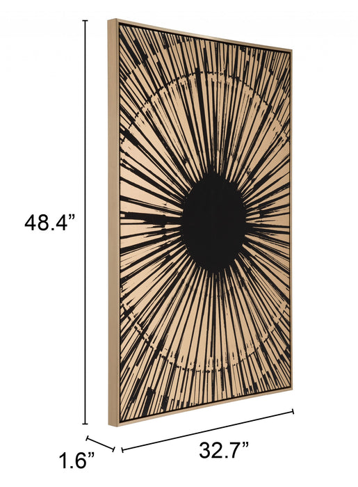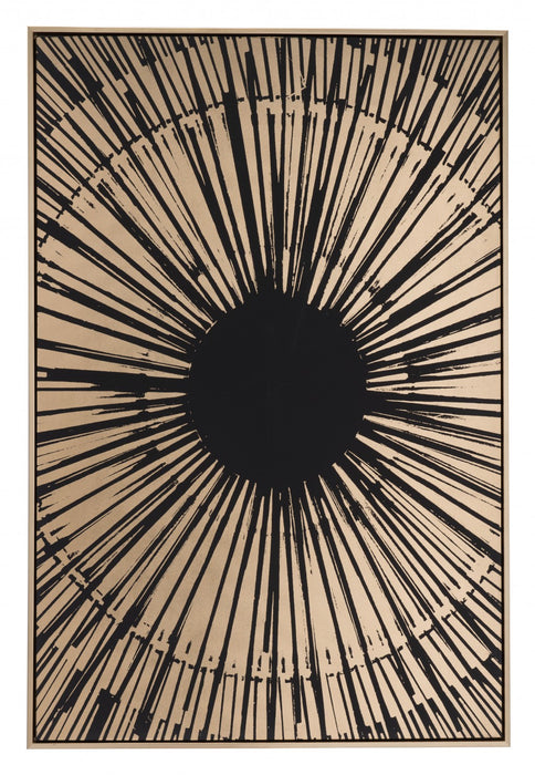 This modern and contemporary Black and Gold Eye Of The Sun Canvas Wall Art will make anyone stop and stare. The detailing of each line, combined with the spectacular black and gold coloring, leaves room for the imagination. Handcrafted in a natural birchwood frame, this modern art piece will add a feeling of uniqueness above your bed over a mantle in the living room or in a dining room.
