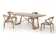 Upgrade your dining room by giving it a touch of class with this lovely dining table. It has a fashionable and sturdy design that will definitely diversify your interior and remove any hint of monotony. Not to mention how obviously well-made it is. This dining table is made from high grade walnut veneer and metal. It's fantastic for making the place livelier. It's also highly practical, besides just standing out with its looks. As for measurements, they are 39 for height, 87 for width, and 30 for depth, and it weighs 215.5 pounds. With this dining table, you'll get a warm and inviting piece for your living room, or dining room.
