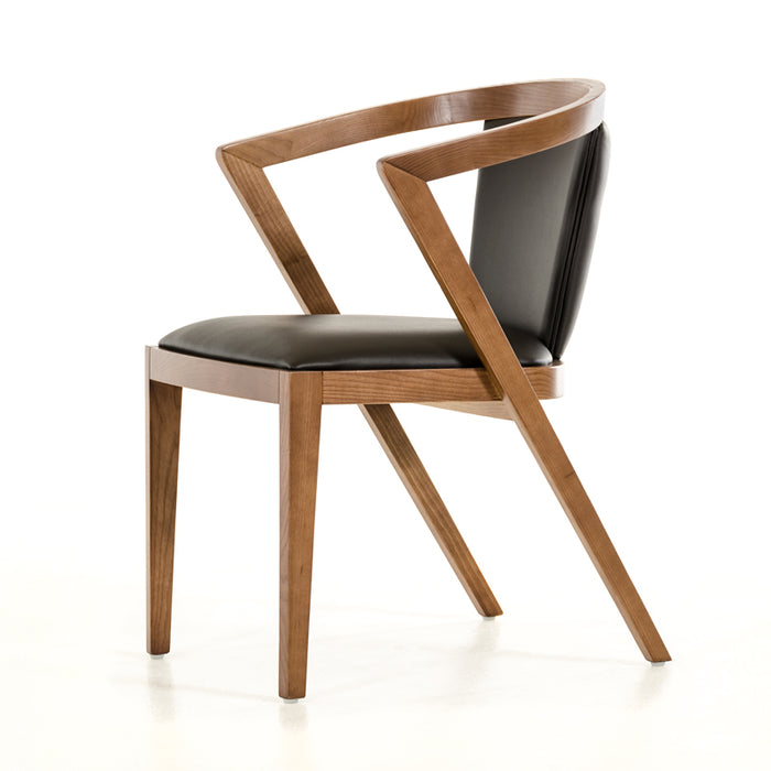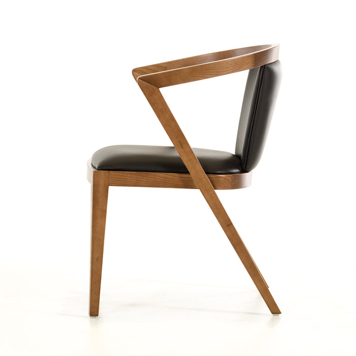 WALNUT WOOD AND LEATHERETTE DINING CHAIR